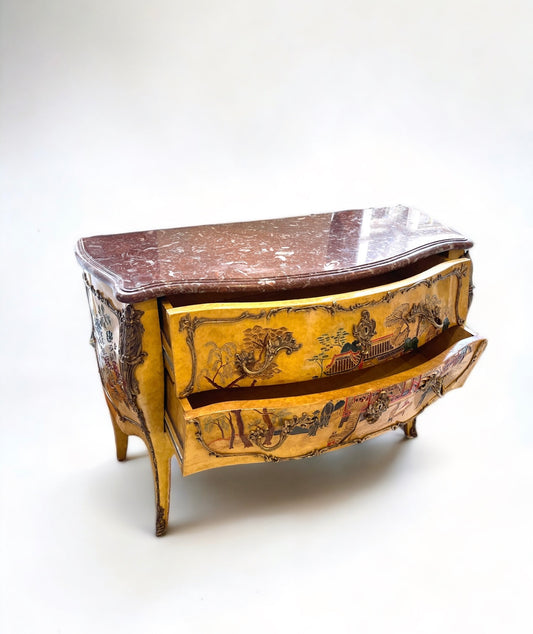 20th Century Louis XV-style Chinoiserie Commode with Marble Top