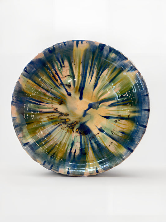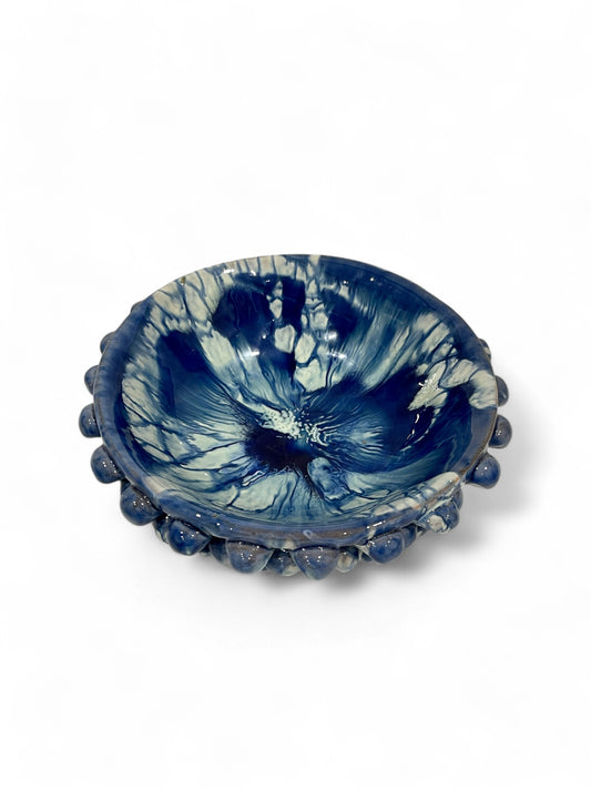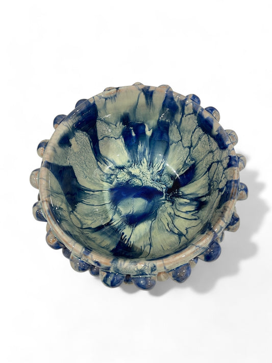 Three-Footed Sicilian Pine Cone Bowl | Blue Yellow Swirl