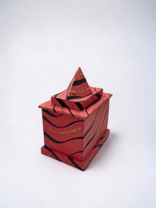 Unique Hand-Painted Pyramidal Decorative Box, Red Stripe