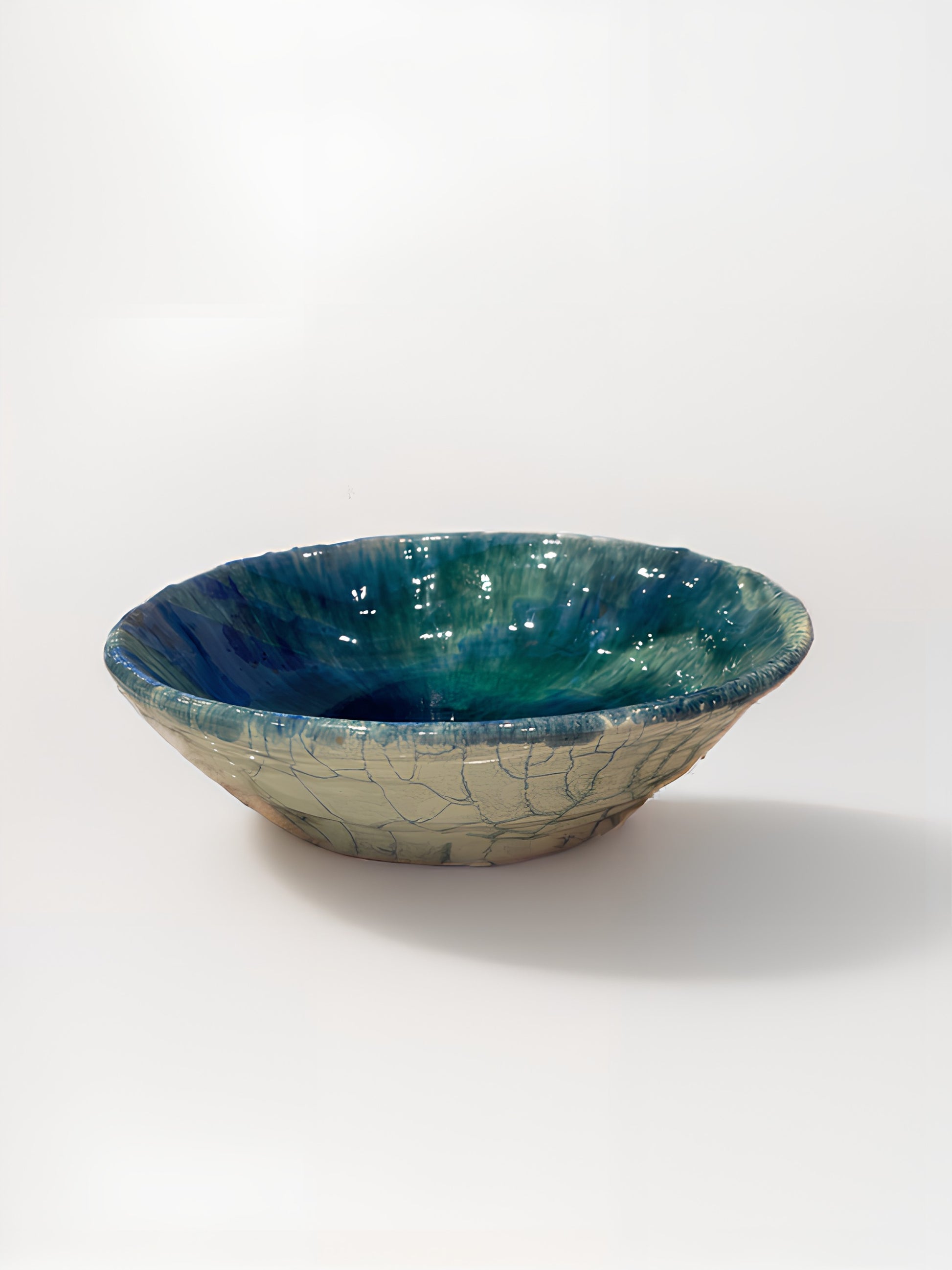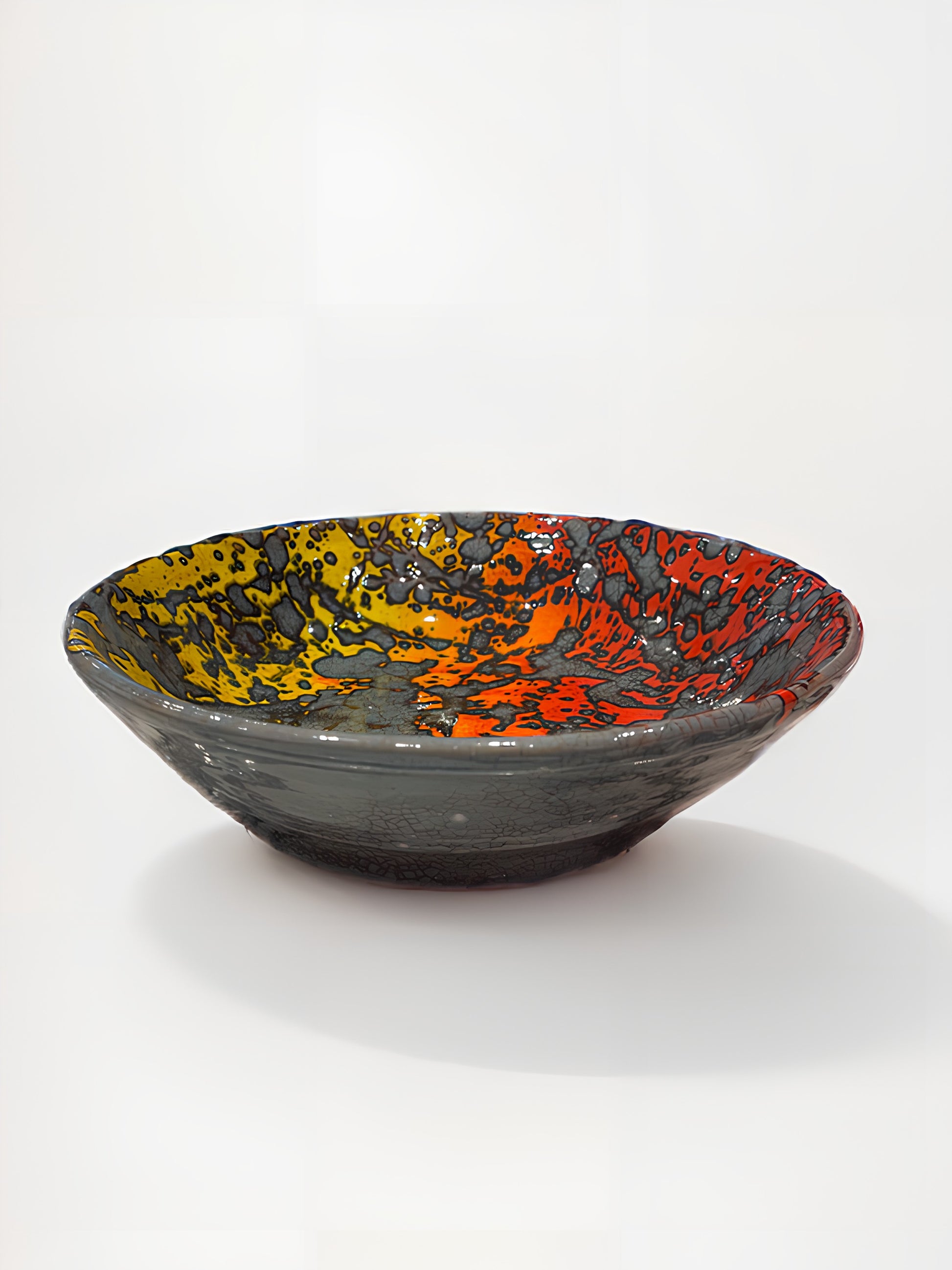 Small unique handmade wood-fired ceramic bowl. It is crafted using traditional techniques, making each piece as one of a kind, with an impressive and unique glaze.