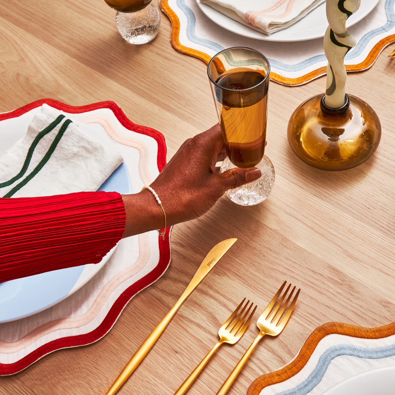 To create that bubbled-glass base—known as pulegoso—Brooklyn-based artist Andrew O. Hughes adds a dusting of baking soda under molten glass. The result? A one-of-a-kind, light-reflecting design that elevates every sip.