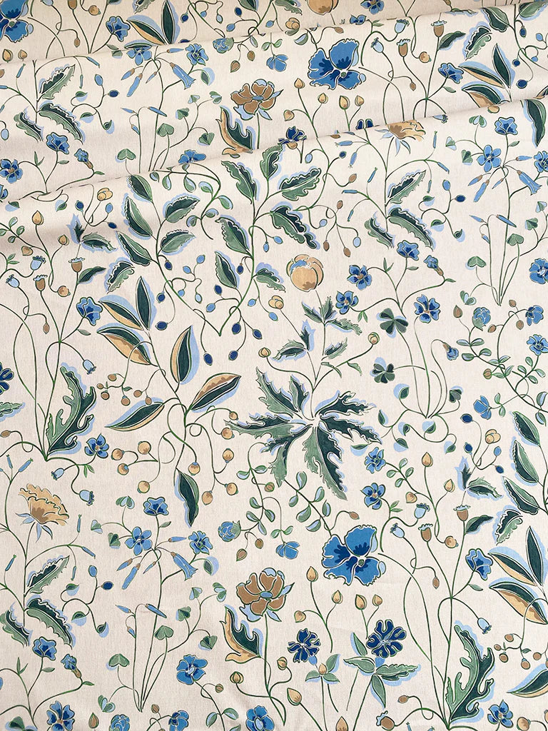 This fabric is suitable for curtain making and furnishing. The fabric is printed on linen-cotton and shows a quality print similar to an original painting.