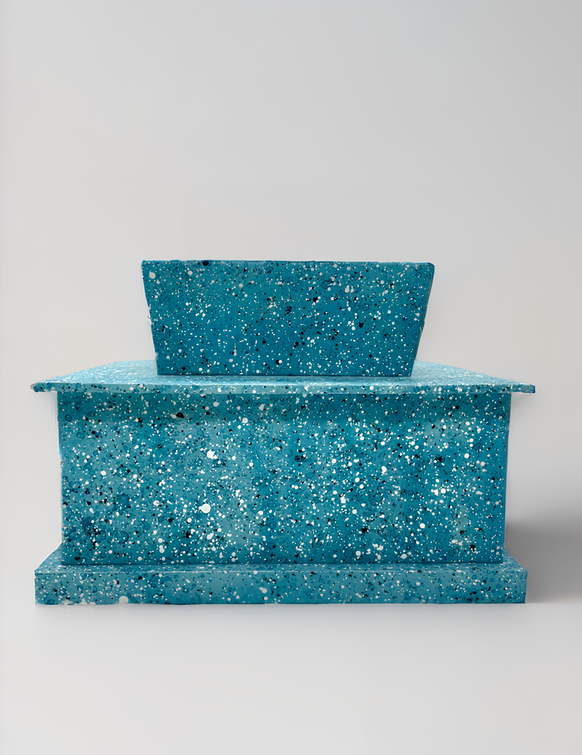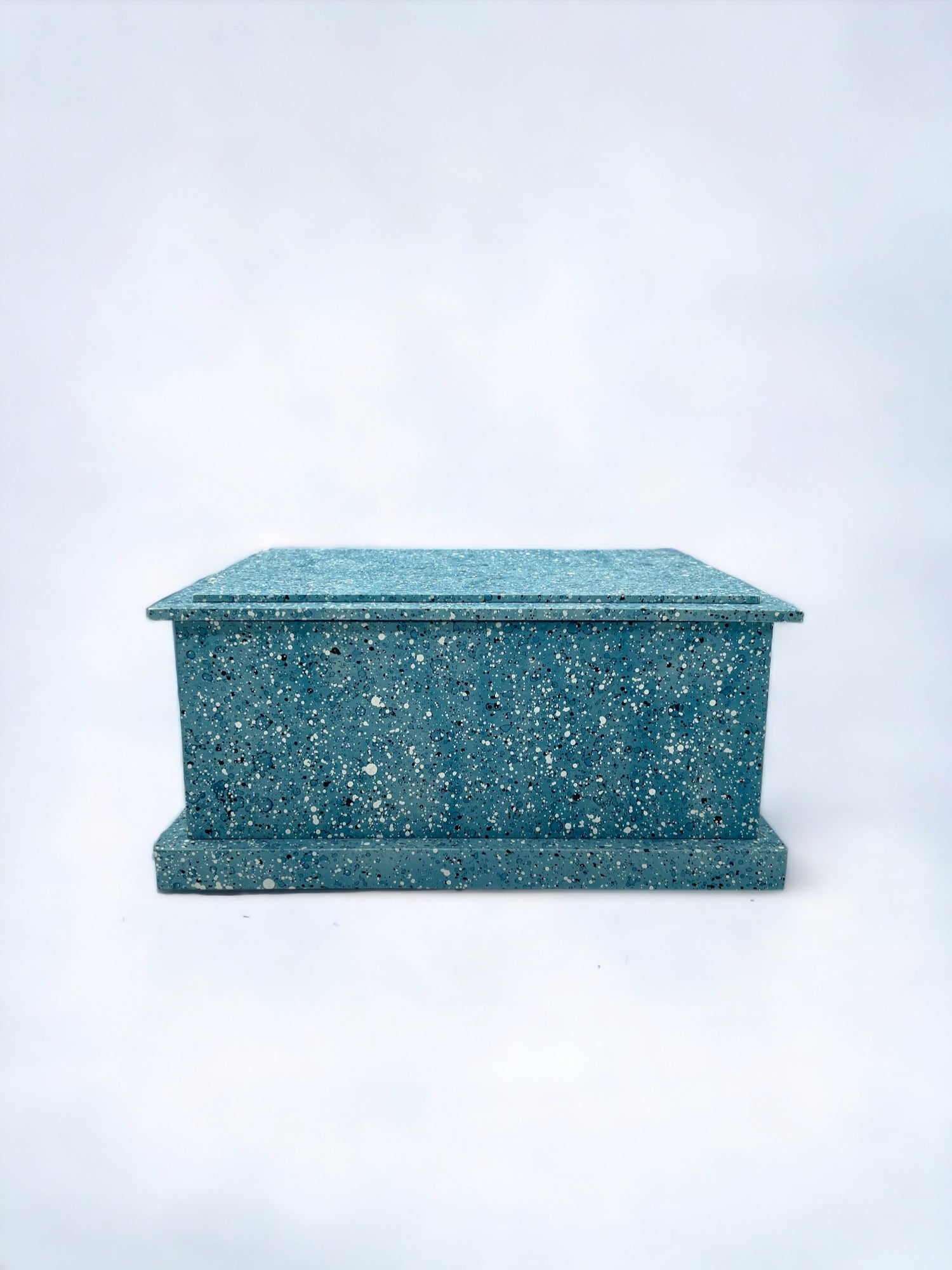 Engelhart's creations combine vintage aesthetics and modern practicality, utilizing recycled paper for their exteriors. An array of marbled, speckled, and malachite papers adorn the artisanship of each box, tabletop, and mirror.
