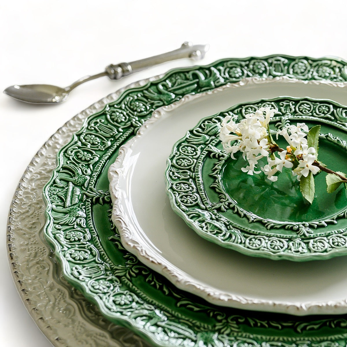This striking salad plate is also an ideal dessert plate, perfectly harmonising with the Renaissance tabletop decor.
