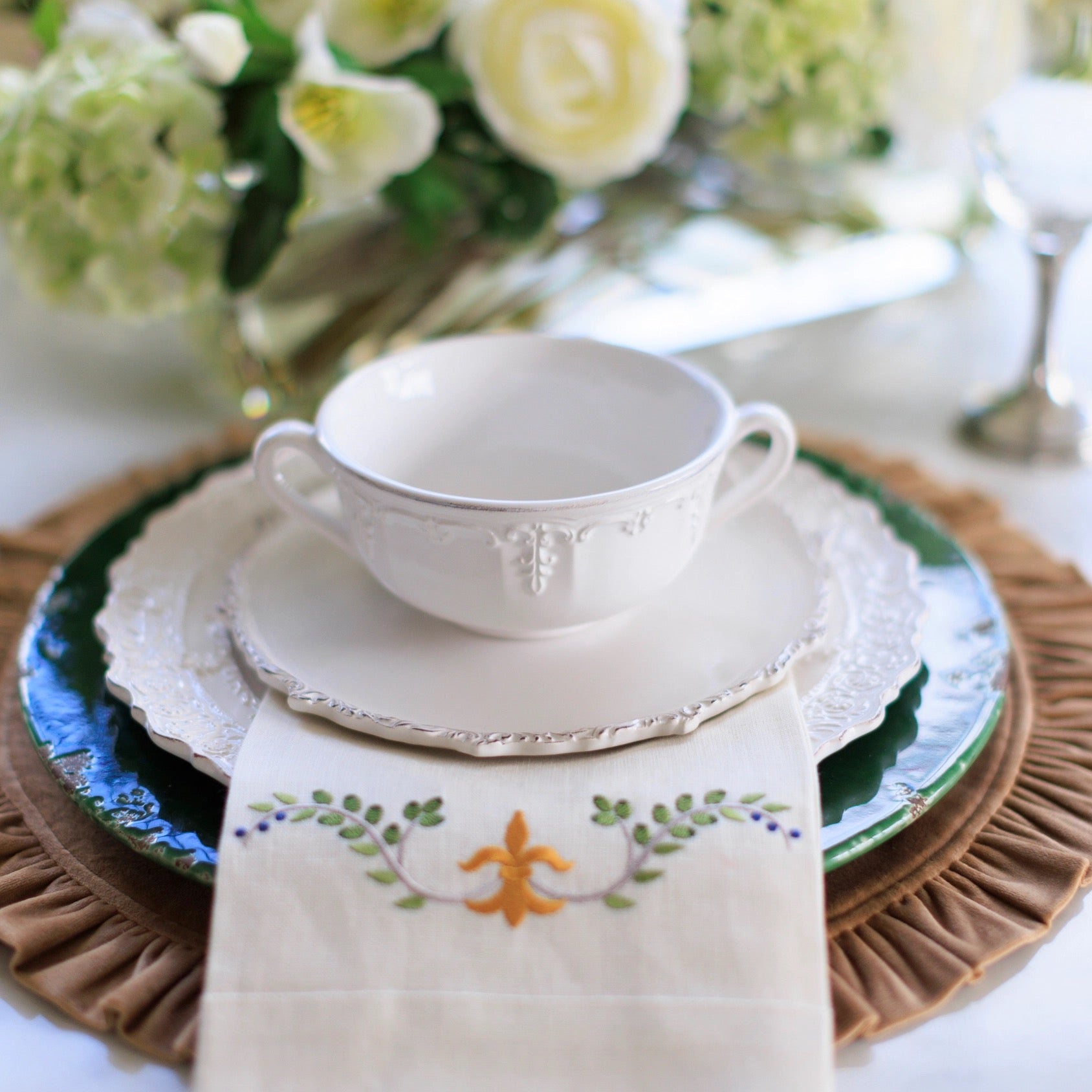 This vibrant soup bowl is a perfect compliment for the Renaissance place setting.