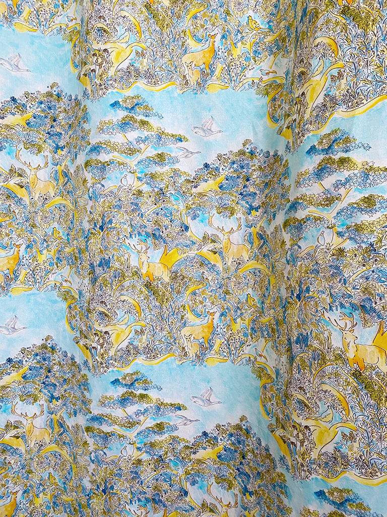 This fabric is suitable for curtain making and furnishing. The fabric is printed on linen-cotton and shows a quality print similar to an original painting.